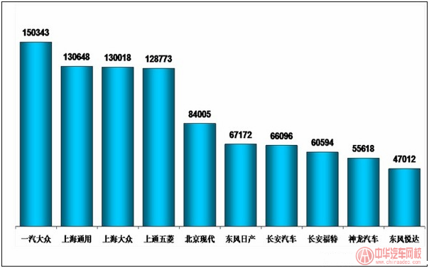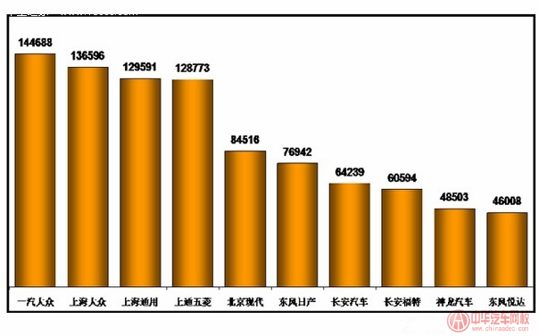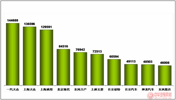 狹義乘用車生產商銷量方面,相比7月份,各大廠商2014年8月汽車銷量大多有所上升,主要原因在于很多乘用車新品提前登場,帶動了車市的銷量增長。8月汽車銷量排行與7月相比變化不大,依然是南北大眾奪得前二席位,北大眾--一汽大眾以144688輛的銷量領先上海大眾。上海大眾以136596輛的銷量取得8月汽車銷量排行榜第二名。