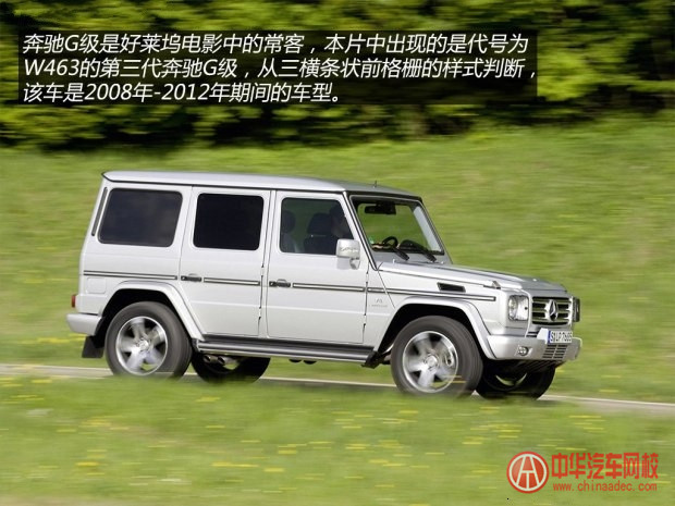 奔馳G級誕生于上世紀70年代,如今已發展至第三代。幾十年間,奔馳G級在外觀方面的變化非常有限,簡單粗獷的造型使它有著“大方盒子”的稱號。作為硬派 越野車,奔馳G級采用非承載式車身與前后整體橋式非獨立式懸架結構,在并且4MATIC全時系統的基礎之上加入了前、中、后三把機械式差速鎖。動力方面, 以奔馳G55 AMG為例,其搭載一臺5.5升V8機械增壓發動機,最大功率為500馬力/6100rpm,峰值扭矩為700牛·米/2750-4000rpm,與發動 機匹配的是5速自動變速箱。奔馳G級的接近角為34°,離去角為29°,通過角為23°,保證了其擁有良好的通過性。