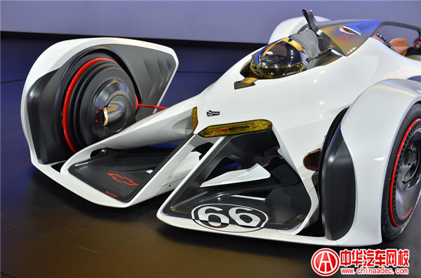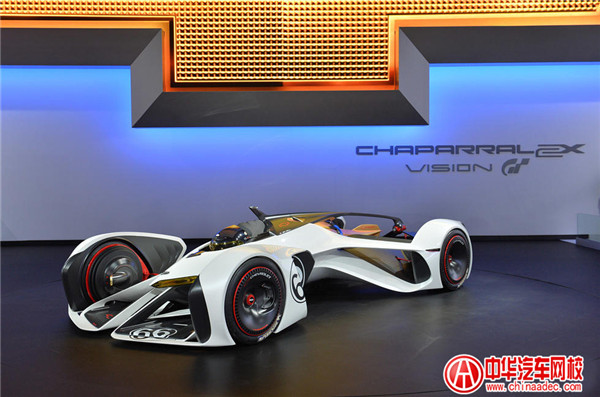在2014洛杉磯車展上,雪佛蘭帶來了一個超前的未來超跑,那就是中華網校小編介紹的這款專為PS3賽車游戲《Gran Turismo 6》打造的虛擬車型,雪佛蘭Chaparral 2X Vision GT賽車,該車的設計靈感來自外太空旅行與未來飛行器,其造型設計也是異常的天馬行空,經過空氣動力學的優化該車配有17英寸輪轂和賽車輪胎。它的設計靈感來自傳說中的Chaparral賽車,車采用激光雷射動力系統,鋰離子電池+氣動發動機,最大功率達900馬力,其百公里加速僅需1.5秒,最高車速為386公里/小時。