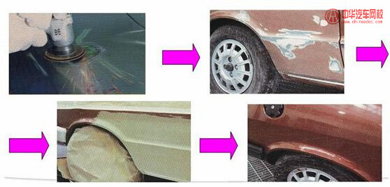 1、打磨:將原漆磨掉,如果需要鈑金在磨掉漆后進行鈑金操作;