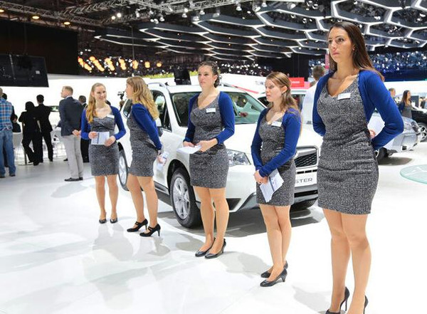 在日內瓦車展上,除了車還是車,不少廠商會用大屏幕、水幕等設施制造出令人驚艷的視覺效果來裝飾自己的展臺,但就是很少用車模。日內瓦車展新聞發言人布萊特納·席爾瓦女士曾表示,車展是否有車模由各廠商自行決定,但作為組織者,不會允許女車模幾近“裸體”出現在展臺上。