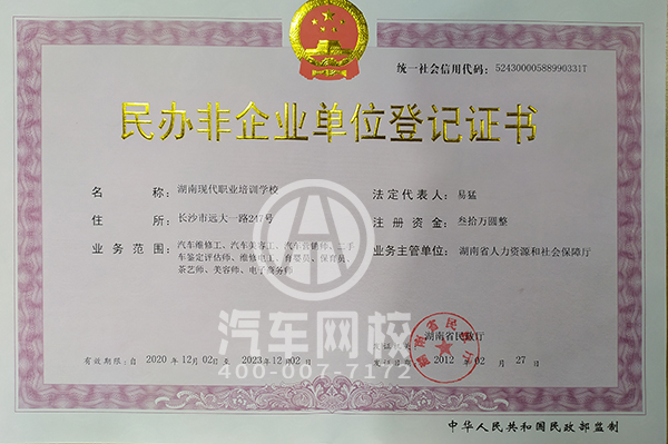 【汽車網校民(min)辦非企業單位登記(ji)證(zheng)書】