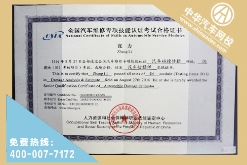 【中華汽車網校 網校新聞】中華汽車網校201606期汽車估損師證書已經順利下發到我校,此證書由人力資源和社會保障部職業技能鑒定中心頒發 。