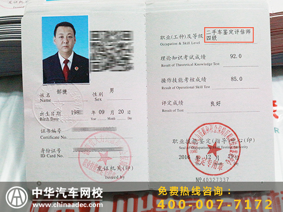 中華汽車網校201607期二手車鑒定評估師證書下發通知