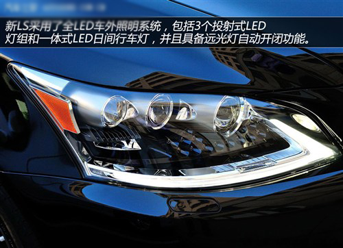 首先讓我們來區分一下這幾款車型,雖然都采用了家族式的前臉,但它們之間還是有所區別的。其中LS460的中網內部以及霧燈周圍都采用了橫條式的鍍鉻裝飾,以彰顯豪華感,倒L形狀的霧燈與整車搭配十分和諧。另外一項重大改進是新款LS首次采用了全LED車外照明系統,包括3個投射式LED燈組以及一體式LED日間行車燈。