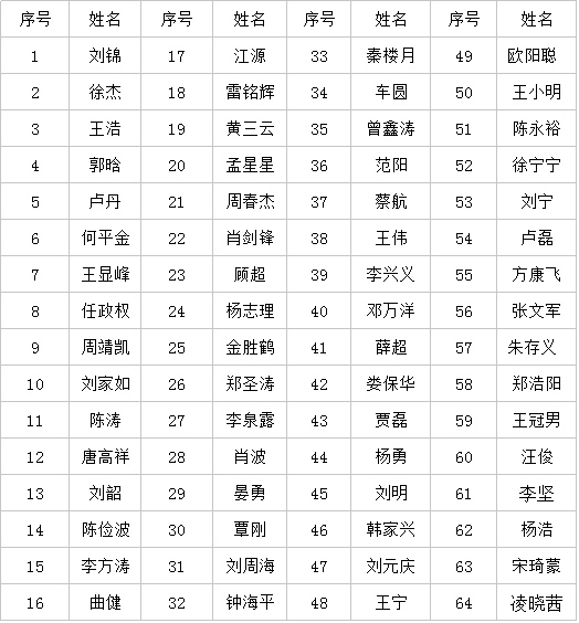 證書下發名單如下: