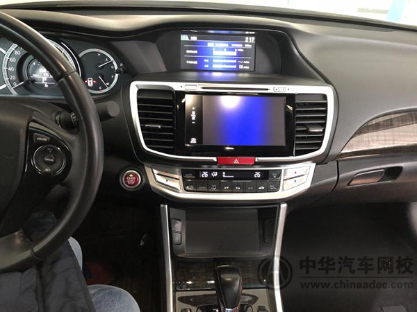 放眼一望雅閣9代的中控臺雙屏極為醒目,其各項的功能按鈕以及觸屏經過徐老濕細心檢測均可正常使用,并且靈敏度非常的高。車主還給自己的愛車加裝了導航,目測價格8千左右,車主非常后悔說:“是在4S店加裝的,還不如我的國產華為手機”。