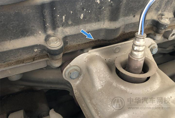 通過檢測發現氣門室蓋位置有些許油泥(密封老化導致),但并不會影響此車的正常使用。但徐老濕建議以后的車主要多關注這個地方,因為一旦出現水滴狀滲漏現象則要盡早修復,避免造成機油虧損過多從而導致機械非正常磨損。