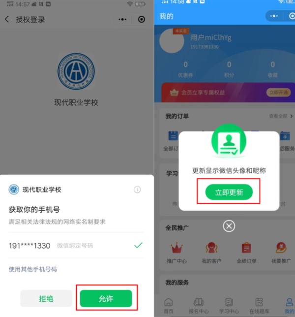 5、授權更新顯示微信頭像和昵稱,選擇“立即更新”